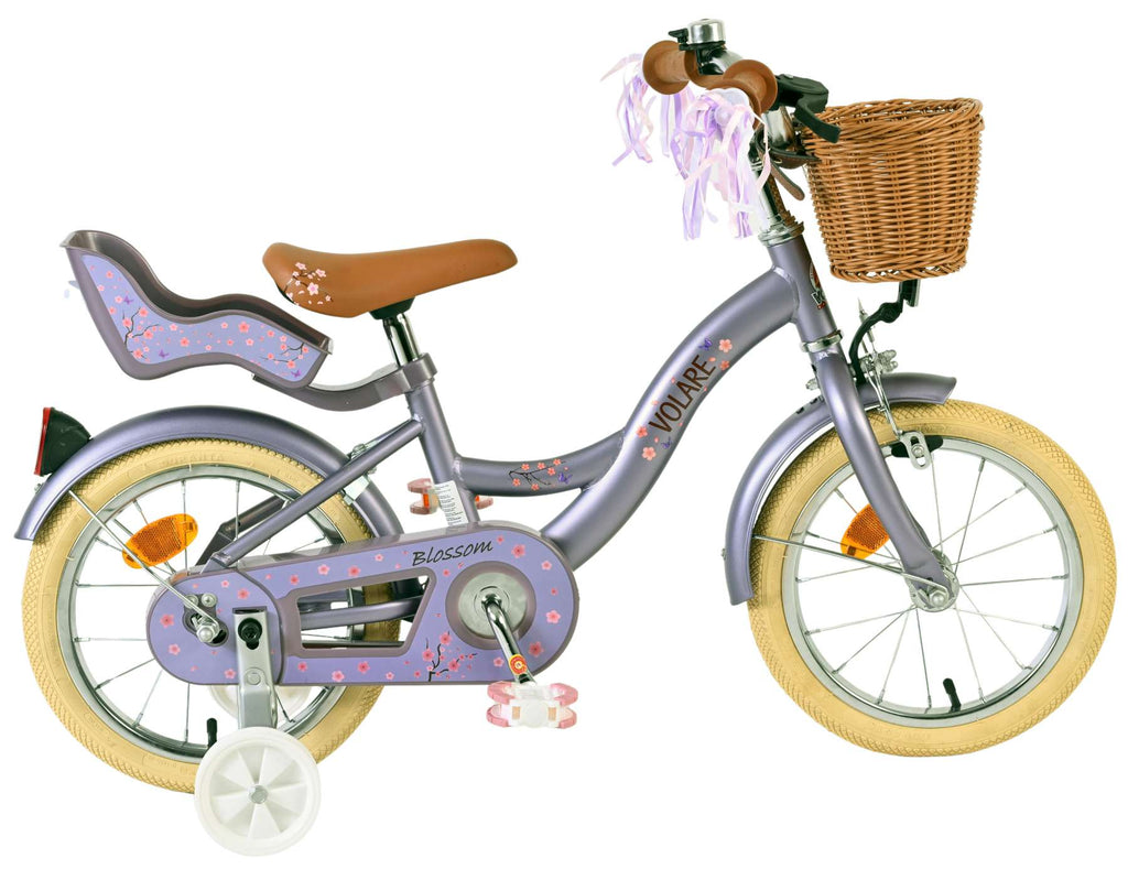Veiligheid staat voorop! Daarom heeft deze gave fiets een handrem en terugtraprem, afneembare zijwieltjes en een gesloten kettingkast. Ook aan het comfort is gedacht. De mooie paarse Volare fiets heeft een poppenzitje, een comfortabel zacht zadel, vrolijke handvatversieringen en een handig rieten mandje. Om zo lang mogelijk van de fiets te kunnen genieten zijn het zadel en stuur in hoogte verstelbaar. Wordt geleverd inclusief al het montagemateriaal dat nodig is om de fiets in elkaar te zetten!