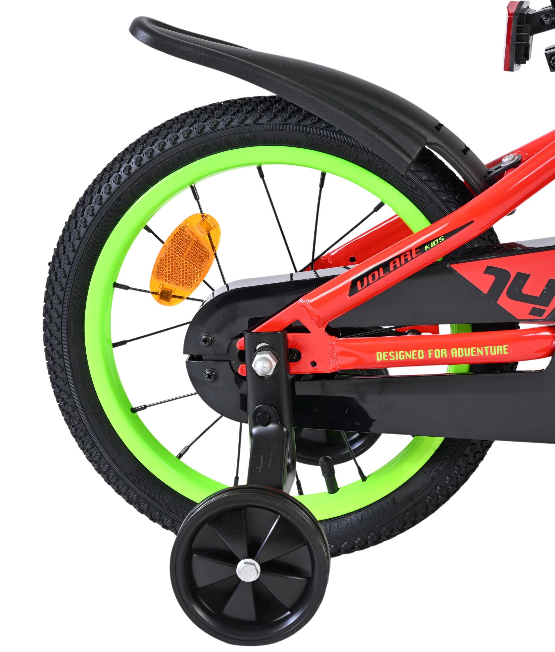 Veiligheid staat voorop! Daarom heeft deze gave fiets een handrem en terugtraprem, een gesloten kettingkast en afneembare zijwieltjes. Daarnaast heeft de fiets een leuke bel. Ook aan het comfort is gedacht. De mooie rode Volare fiets met groene accenten heeft een luxe zacht zadel, een strak frame dat wel tegen een stootje kan, en extra lange spatborden om al het vuil tegen te houden. Om zo lang mogelijk van de fiets te kunnen genieten heeft de fiets een extra lange zadelpen waardoor de fiets nóg langer meegroeit. Wordt geleverd inclusief al het montagemateriaal dat nodig is om de fiets in elkaar te zetten!