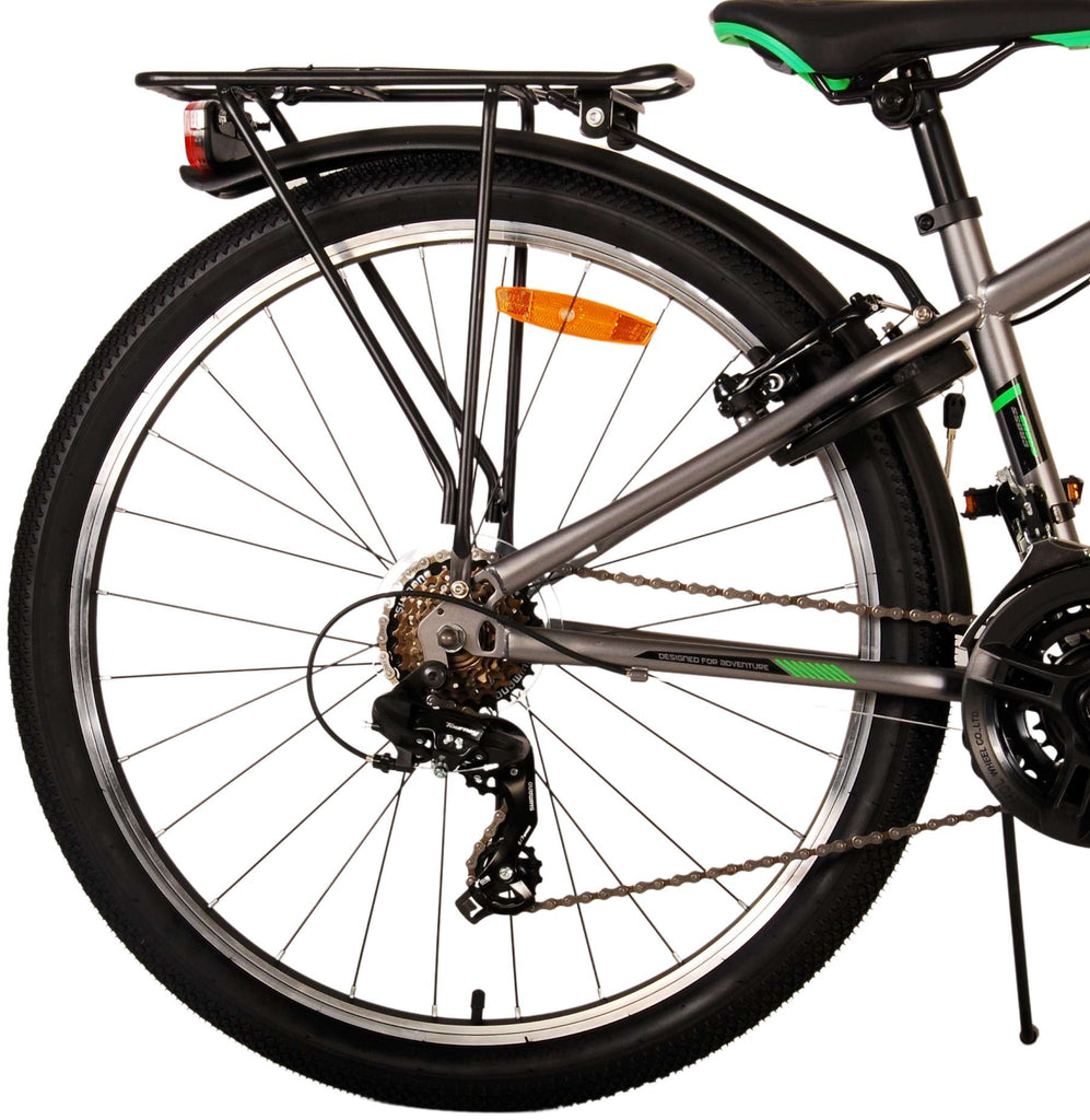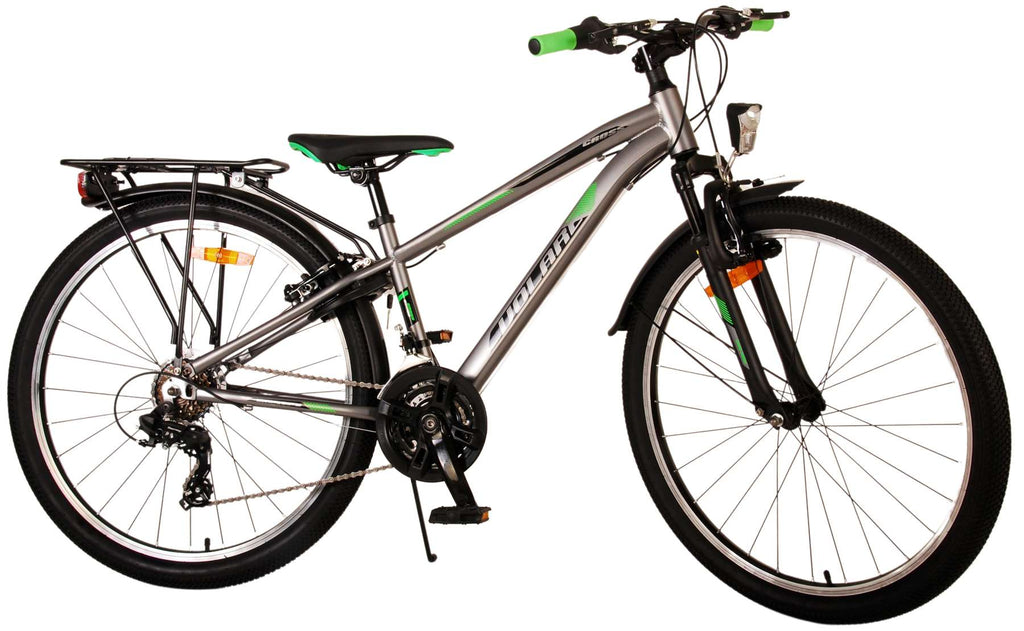Veiligheid staat voorop! Daarom heeft deze stoere fiets geen terugtraprem maar twee handremmen, 21 versnellingen, reflectoren in de wielen en verlichting op batterijen voor en achter. Ook aan comfort is gedacht. De mooie grijze Volare fiets heeft een handige achterdrager om al je spullen moeiteloos mee te nemen, een comfortabel zacht zadel, een standaard zodat je fiets altijd netjes staat en een stevig slot. Om zo lang mogelijk van de fiets te kunnen genieten heeft hij een extra lange zadelpen, zodat de fiets nog langer met het kind meegroeit. Let op: het stuur is niet in hoogte verstelbaar!