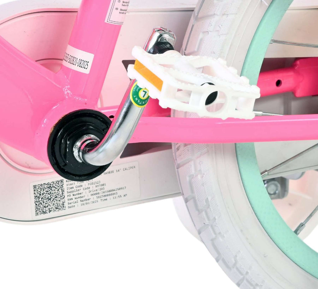 De Barbie 14 inch kinderfiets combineert stijl, veiligheid en plezier – perfect voor elk avontuur in Barbie-stijl.