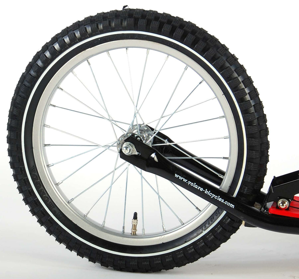 Deze stoere VOLARE autoped in de kleurstelling mat zwart en rood met een modern sterk frame. Met stoere extra brede luchtbanden. Heeft een voetrem op het achterwiel en een V-brake op het voorwiel. Stuur is in hoogte verstelbaar. De step heeft een standaard. Deze 16 inch Volare autoped is de ideale eerste autoped voor kinderen. Is geschikt voor kinderen vanaf 7 tot 10 jaar. Wij adviseren om uw kind een beschermede helm te laten dragen. Zie voor een uitgebreide helmen collectie op onze site.