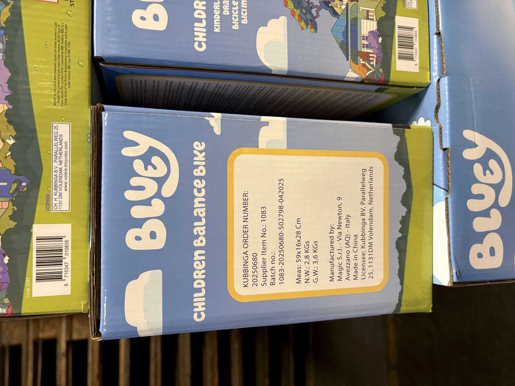 Deze Bluey loopfiets metaal is geschikt voor kinderen van 2+ jaar met kledingmaat 86 - 98.