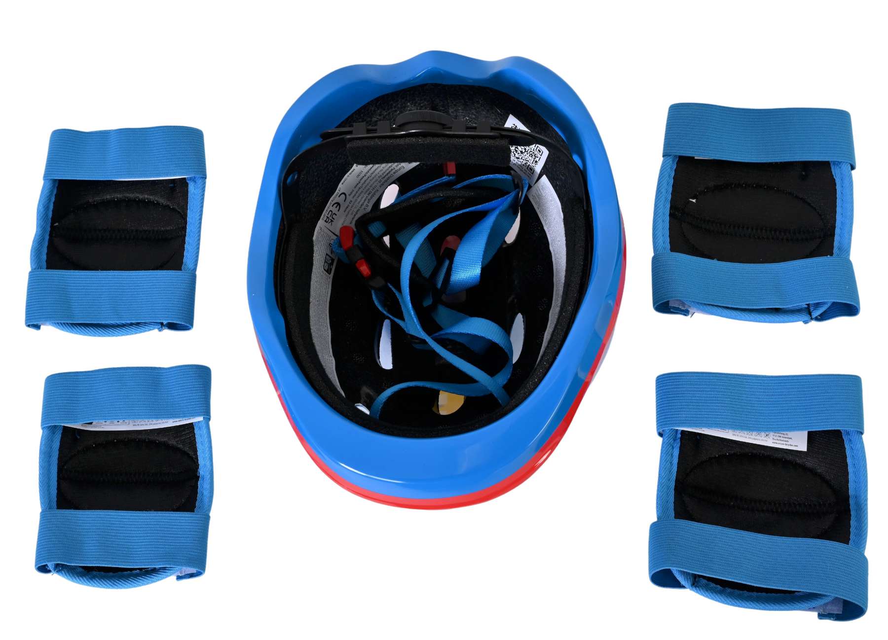 De set bestaat uit kniebeschermers, elleboogbeschermers en een helm, zodat de belangrijkste zones goed beschermd zijn bij een val of stoot. Alles wordt geleverd in een leuke tas, waardoor je de protectie eenvoudig kunt meenemen naar school, het park of op vakantie en na gebruik weer netjes kunt opbergen.
