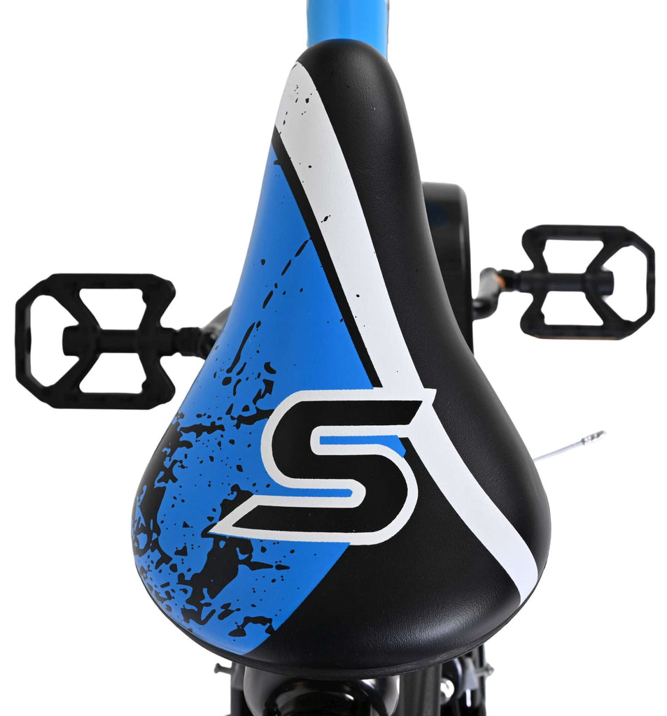 Veiligheid staat voorop! Daarom heeft deze gave fiets twee handremmen en geen terugtraprem! Het sterke stalen frame heeft met de stoere blauw met zwarte kleurstelling een zeer sportieve uitstraling. Met de bidon in de praktische bidonhouder heeft uw kind altijd iets te drinken bij zich. De spatborden houden al het opspattend vuil tegen. Ter bescherming van de kleine vingertjes is de kettingkast gesloten. De fiets heeft zijwielen en een stevige standaard.