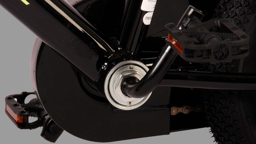 Veiligheid staat voorop! Daarom heeft deze gave fiets een handrem en terugtraprem, een gesloten kettingkast en afneembare zijwieltjes. Daarnaast heeft de fiets reflectoren in de wielen, voor- en achterop de fiets en een leuke bel. Ook aan het comfort is gedacht. De mooie zwarte Volare fiets met groene accenten heeft een zacht zadel, een tijdloos design, en een uniek frame dat wel tegen een stootje kan. Om zo lang mogelijk van de fiets te kunnen genieten zijn het zadel en stuur in hoogte verstelbaar. Wordt geleverd inclusief al het montagemateriaal dat nodig is om de fiets in elkaar te zetten!