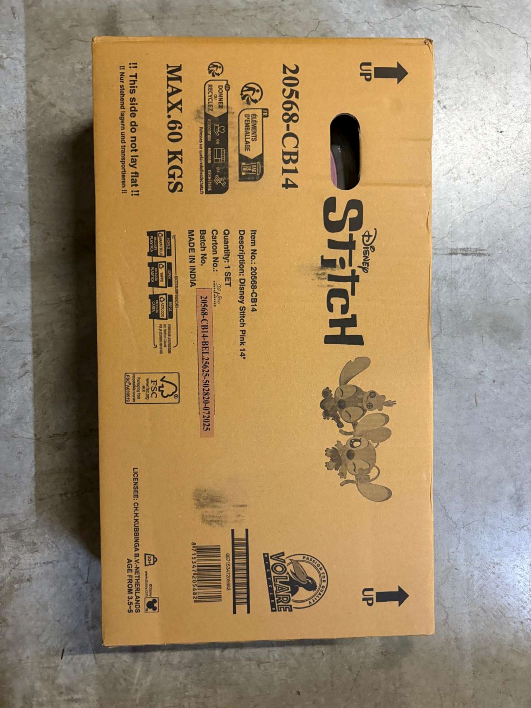 Deze Disney Stitch Kinderfiets is geschikt voor kinderen van 3,5 - 5 jaar met kledingmaat 98 - 110.