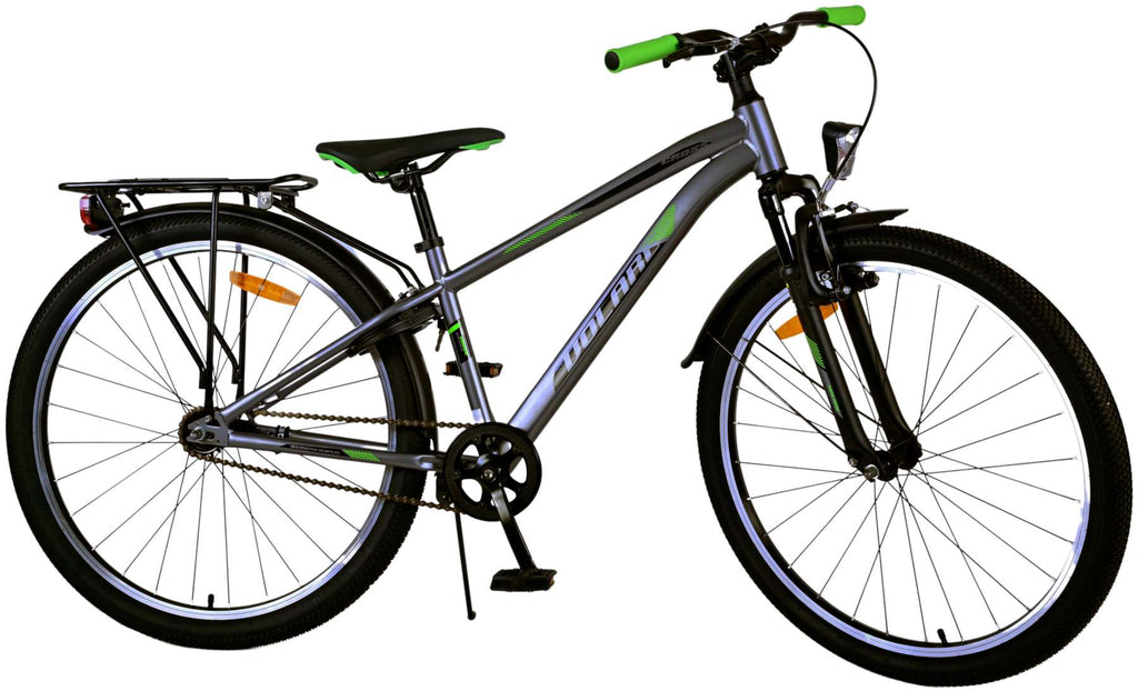 Veiligheid staat voorop! Daarom heeft deze gave fiets een handrem en terugtraprem, reflectoren in de wielen en verlichting op batterij voor en achter. Ook aan het comfort is gedacht. De mooie donkergrijze Volare fiets heeft een handige achterdrager om moeiteloos al je spullen mee te nemen, een comfortabel zacht zadel, een standaard zodat je fiets altijd netjes blijft staan en een stevig slot. Om zo lang mogelijk van de fiets te kunnen genieten heeft deze een extra lange zadelpen waardoor de fiets nóg langer met het kind meegroeit. Let op, het stuur is niet in hoogte verstelbaar!