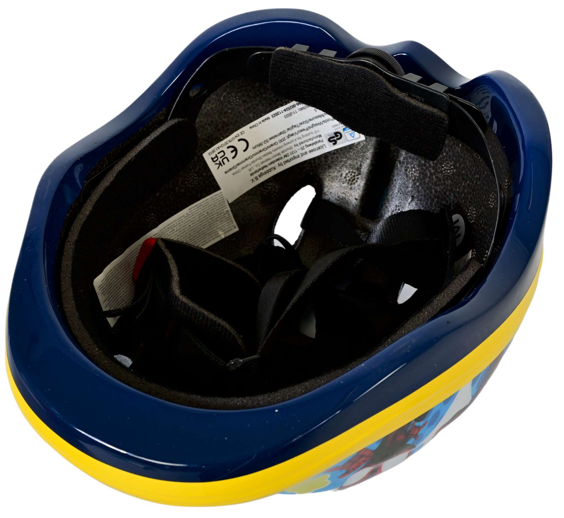 Volare Kinderfietsen beschikt over een grote collectie licentie helmen. Een daarvan is deze prachtige Spidey fietshelm. De mooie blauwe kleur en de Spidey decoraties geven de helm een perfecte uitstraling. Met de draaiknop is de hoofdomtrek van de helm verstelbaar van 52 tot 56 cm. Daarbij is de onderkant van de helm ook bedekt. De helm weegt slechts 200 gram. Dat maakt hem extra licht en dus makkelijk te dragen. De helm is naar de strengste eisen van het TÜV/GS goedgekeurd.