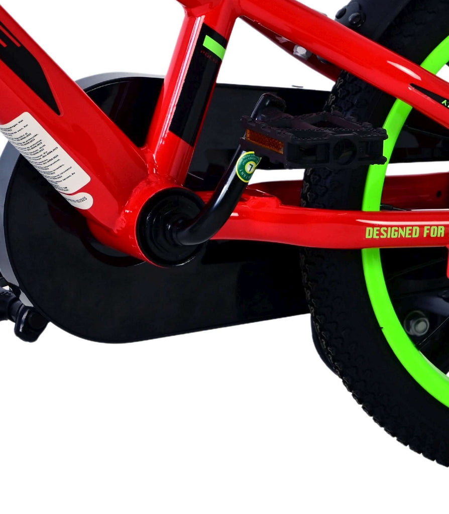 Veiligheid staat voorop! Daarom heeft deze gave fiets een handrem en terugtraprem, een gesloten kettingkast en afneembare zijwieltjes. Daarnaast heeft de fiets een leuke bel. Ook aan het comfort is gedacht. De mooie rode Volare fiets met groene accenten heeft een luxe zacht zadel, een strak frame dat wel tegen een stootje kan, en extra lange spatborden om al het vuil tegen te houden. Om zo lang mogelijk van de fiets te kunnen genieten heeft de fiets een extra lange zadelpen waardoor de fiets nóg langer meegroeit. Wordt geleverd inclusief al het montagemateriaal dat nodig is om de fiets in elkaar te zetten!